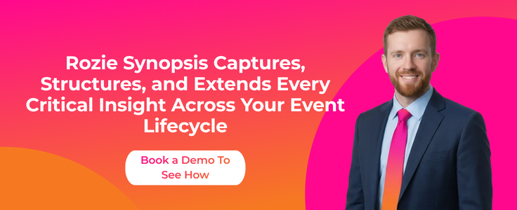 That’s where platforms like Rozie Synopsis play a critical role. By capturing live session insights and turning them into a searchable knowledge hub, organisers can extend the value of their event and keep audiences engaged long after the event is over. Curious how Rozie Synopsis works in practice? Book a demo and see how Rozie Synopsis extends the value of your event beyond closing day.