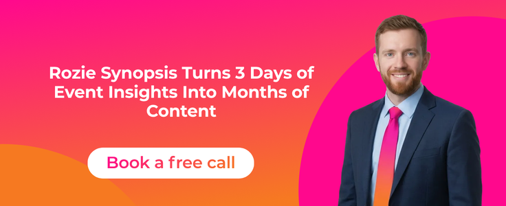Every asset Rozie Synopsis generates serves a direct purpose in your post-event content workflow. Together, they turn a three-day event into a content engine that runs for months. Want to see how it works for your next event? Talk to our team today.
