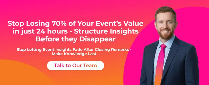 Conferences generate concentrated bursts of knowledge. Several days of keynotes, panels, and breakout sessions deliver insights attendees are expected to absorb, remember, and apply. But research on the forgetting curve shows that people forget up to 70% of new information within 24 hours without reinforcement.