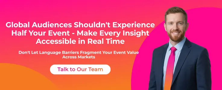 International events attract diverse audiences. Attendees fly in from different regions, speak different languages, and expect to engage with content in an easy, accessible way. But when sessions are delivered in a single language without structured translation support, a significant portion of the audience experiences the event passively or worse, disengages entirely.